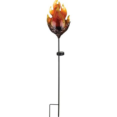 Realistic flickering flame. The two-prong fork secures the stake to the ground. 6-8 hours of continuous light at night.